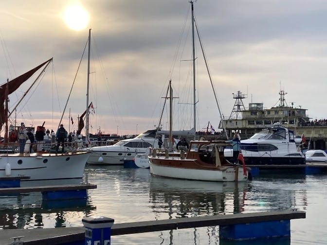 On arrival in Ramsgate, we found the town was full and had to park a distance from the marina. Gill and I managed to meet up with Peter just as the Royal Marines led various dignitaries, including the Association of Dunkirk Little Ships Hon Admiral HRH Prince Micheal of Kent, down to the harbour to unveil the Dunkirk Memorial. The event was very well attended by locals and many visitors and was followed by a fly past of vintage aircraft and modern helicopters. As the crowds dispersed, we found our way to Peters boat and stowed all my kit and enjoyed a well-earned drink. Shortly, after Gill and I said our goodbyes, I returned to help prepare “Hertford” for an early start and an expected long haul across the Channel the following day.