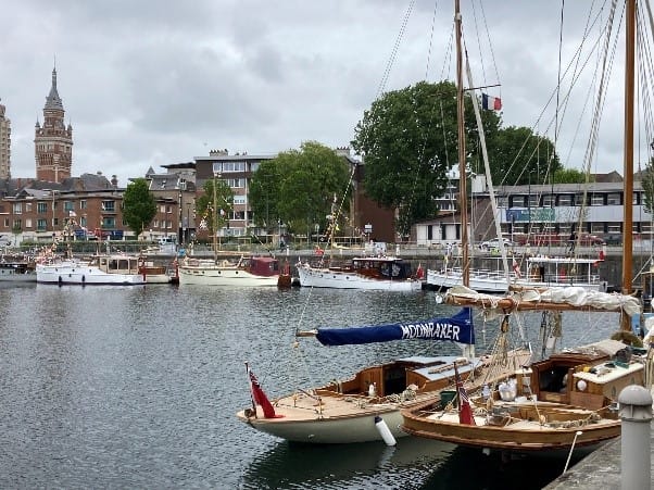 Later that day, we discovered we were close to the vessel used by HRH Prince Michael of Kent GVVO. The Royal Standard was seen flying from the stern mast.Peter and I decided to make our way over to the Bassin du Commerce, to await the Little Ships arrival. Unfortunately, due to problems in one of the locks the flotilla was some two hours late and the wind had increased in strength making their mooring plan difficult to execute. It was pleasing to see several military vehicles had made their way over and arrived on the quay to greet the boats as they came together with several locals. Once the boats were safely moored, Peter and I made our way back to Hertford and had a meal before having an early night.